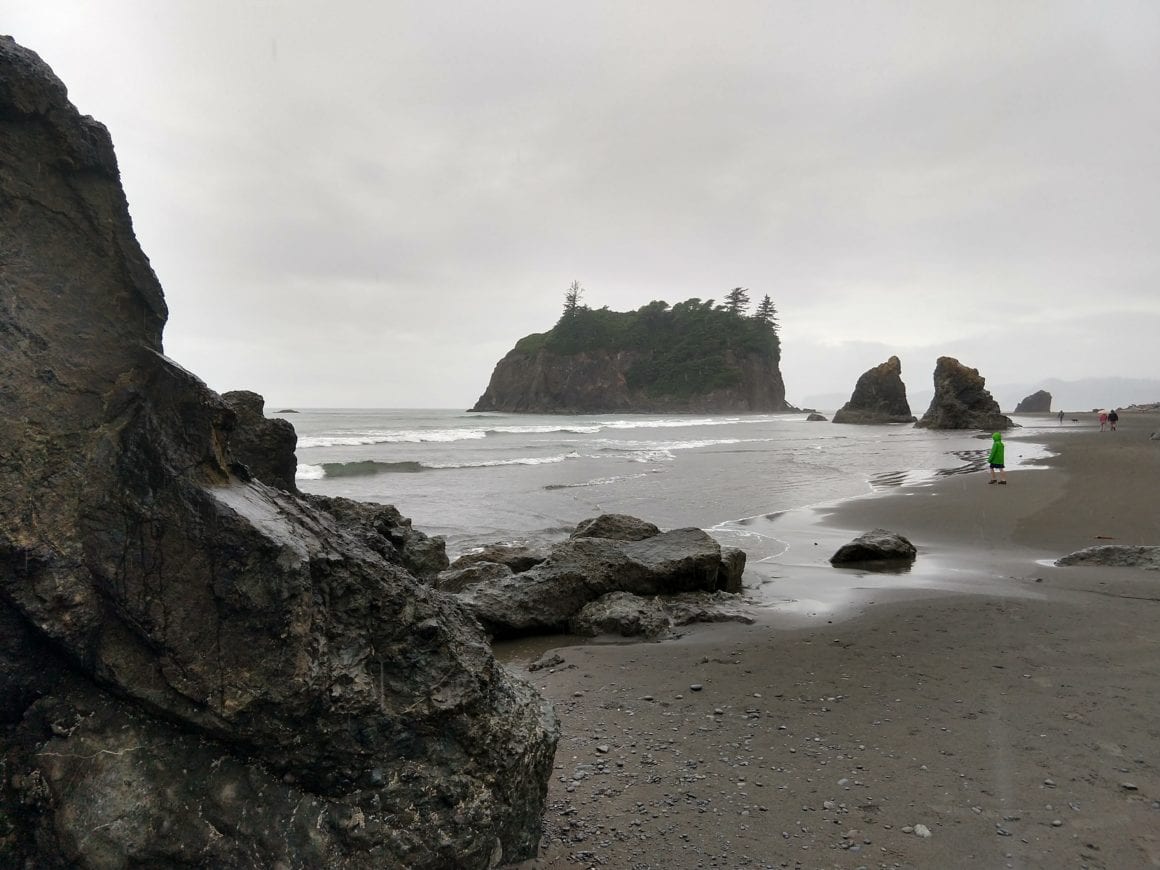 As we drove west, the skies clouded up and it started to rain again. At least I expected rain here, especially as we made our way to the west side of the Olympic Mountains. We drove most of the way in rain, making a wrong turn close to the campground. We worried we’d miss the one open spot at the campground. We had almost no cell reception for awhile, so we were not able to get the directions we wanted. We eventually figured it out, and found the campground. To our surprise there were several open spots. The Mora Campground is large, and also pretty nice, with fairly new and clean bathrooms. There were not too many insects, though I believe our campsite had some Giant Hogweed, a notorious phototoxic invasive species. Needless to say, we didn’t touch it.